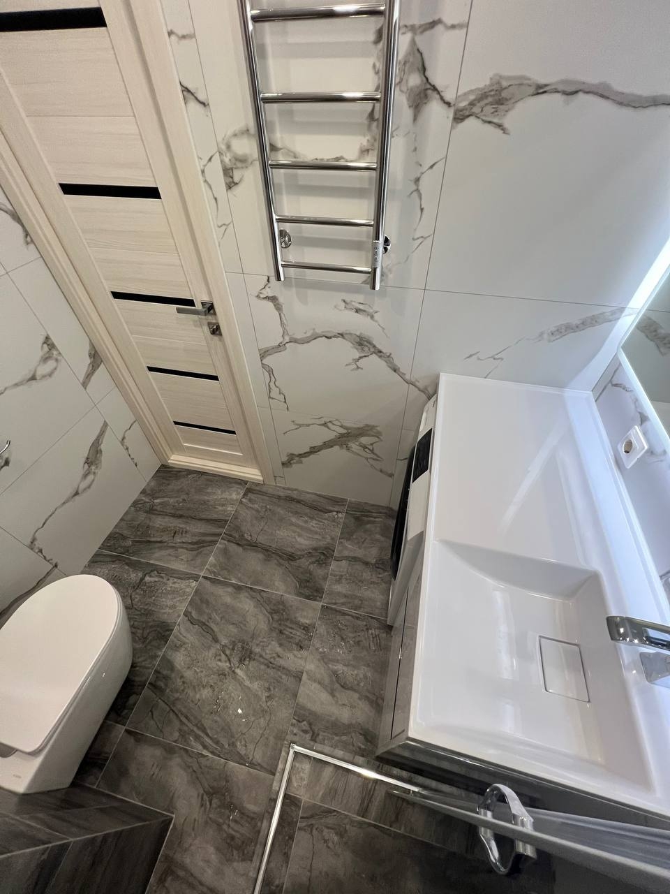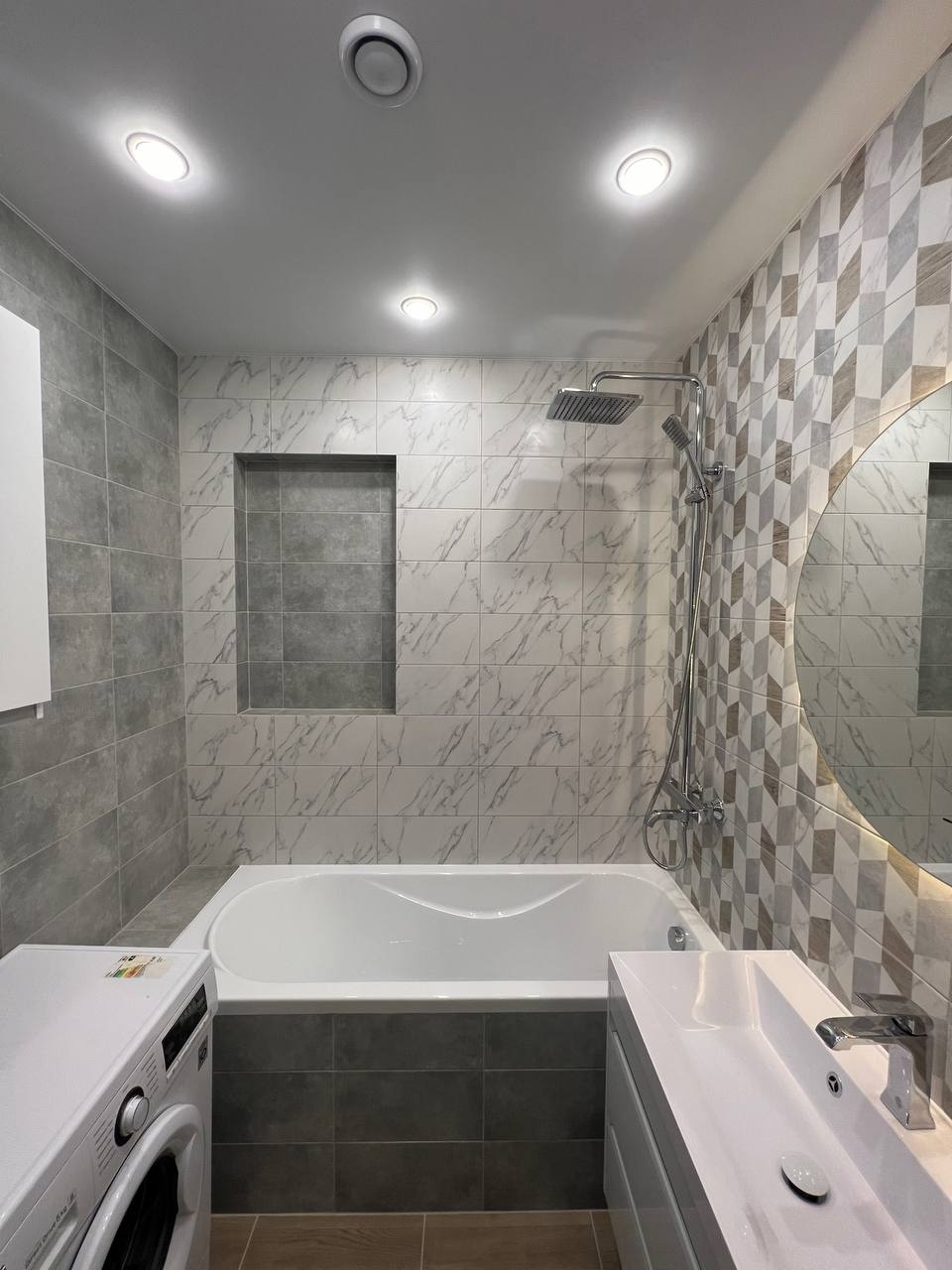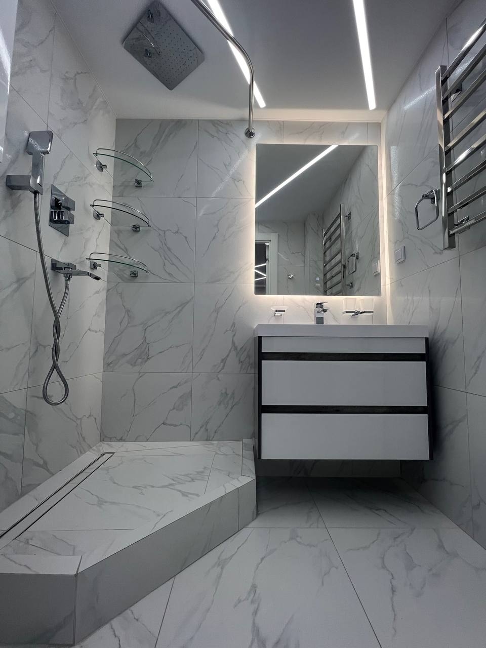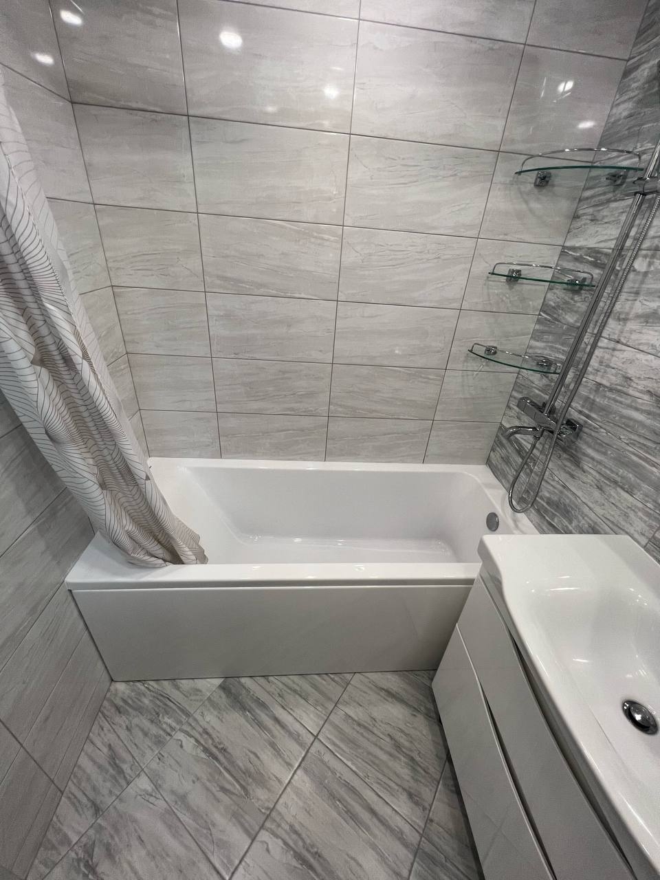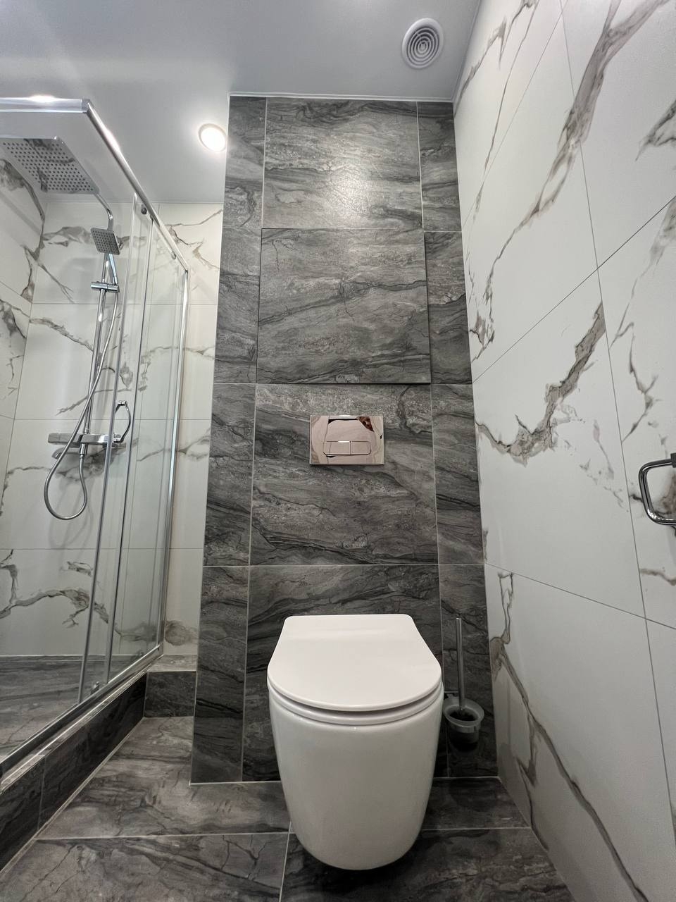 также посоветуем, где лучше приобретать. Материалы, требующие согласования (пвх панели,плитка, унитаз, ванна и мебель), вы выбираете сами, оплачиваете, а мы доставим и занесем в дом. Вспомогательный материал (клей, цемент, трубы и пр.) мы купим и доставим самостоятельно. Мы все доставим, поднимем, не беспокойтесь об этом – все отработано «как часы»