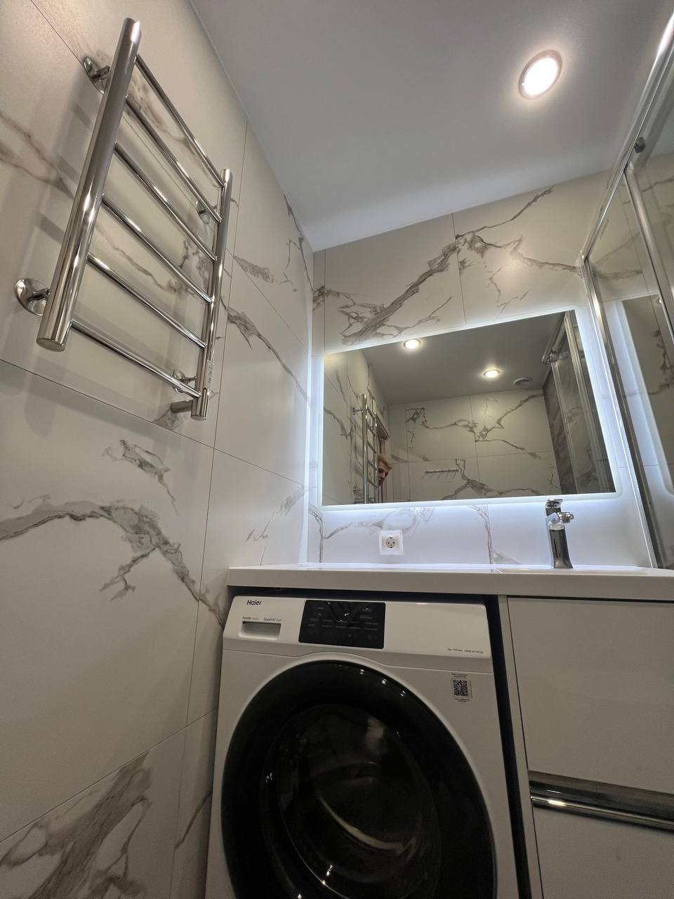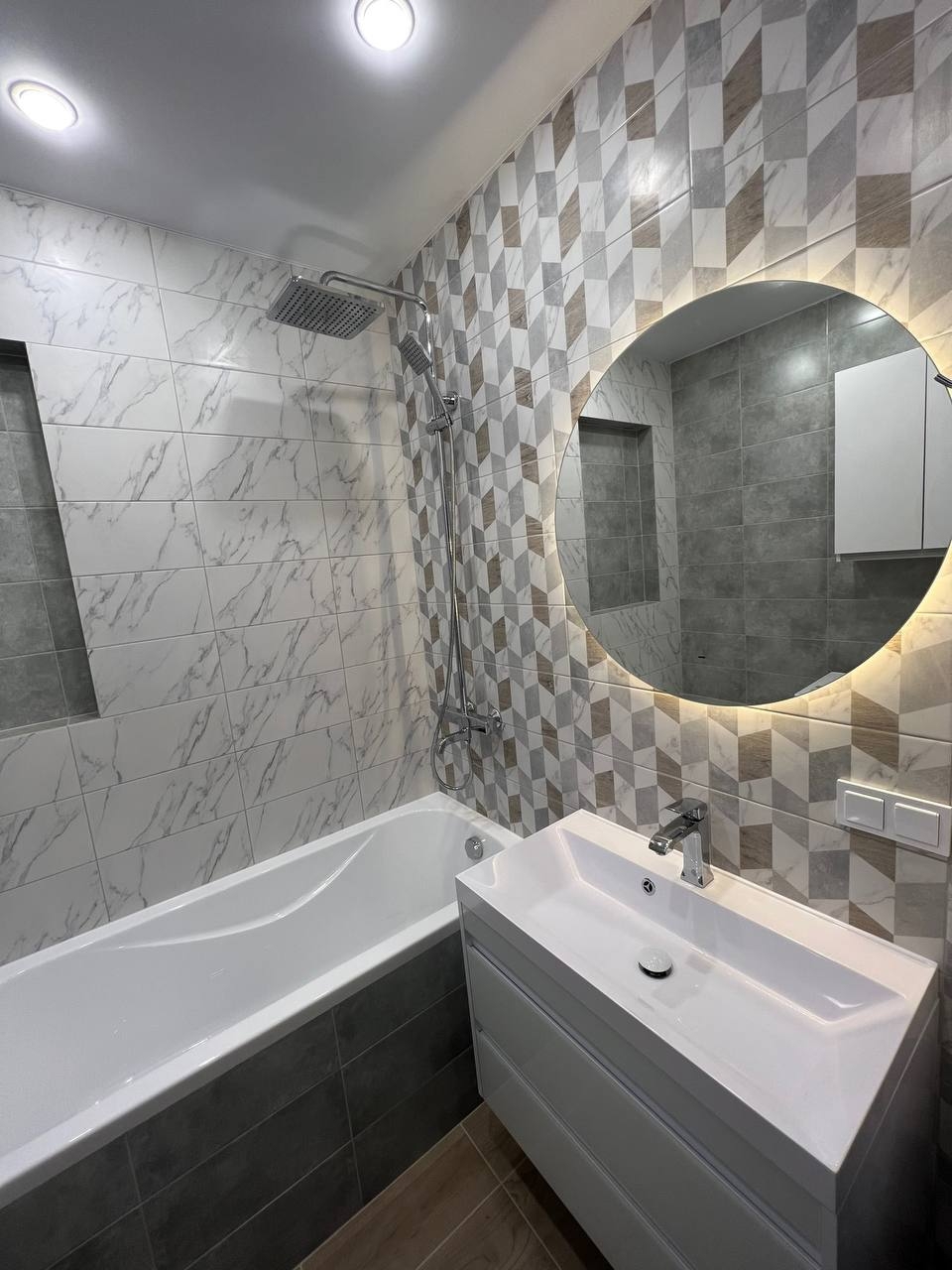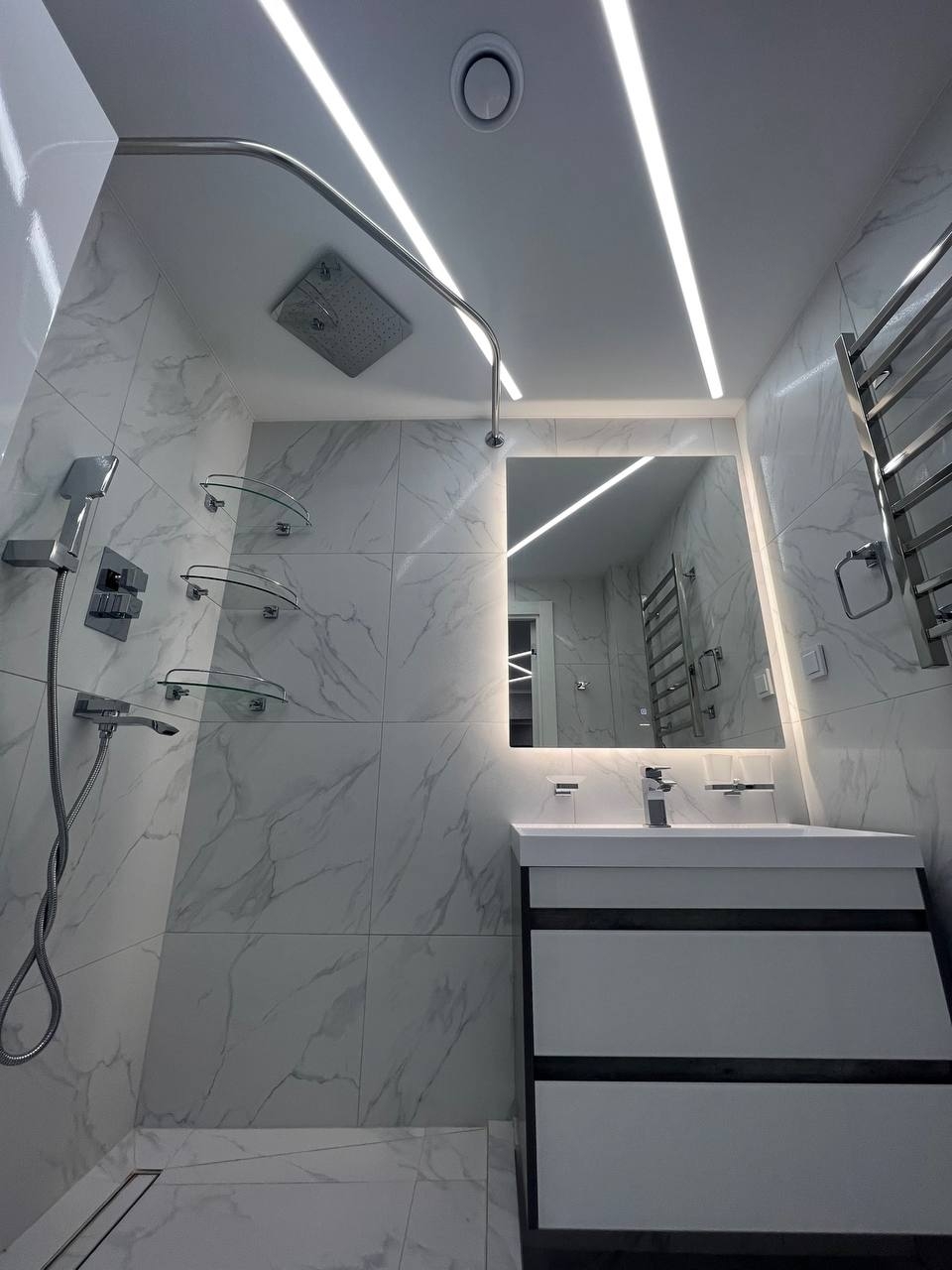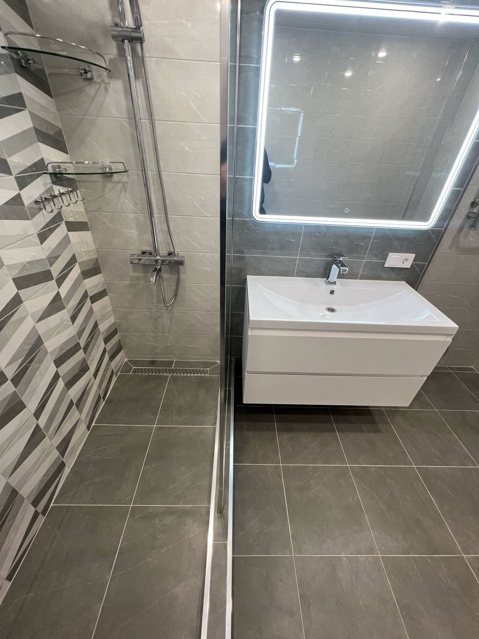 также посоветуем, где лучше приобретать. Материалы, требующие согласования (пвх панели,плитка, унитаз, ванна и мебель), вы выбираете сами, оплачиваете, а мы доставим и занесем в дом. Вспомогательный материал (клей, цемент, трубы и пр.) мы купим и доставим самостоятельно. Мы все доставим, поднимем, не беспокойтесь об этом – все отработано «как часы»
