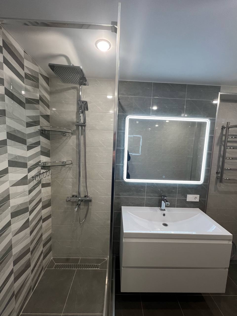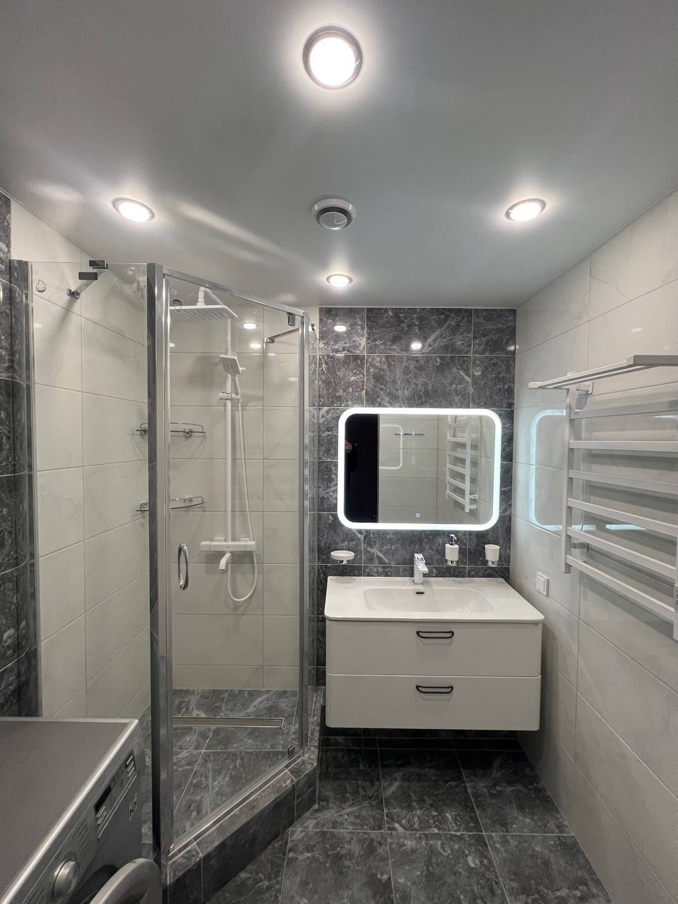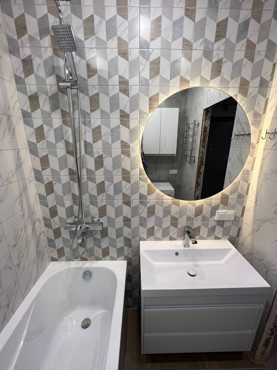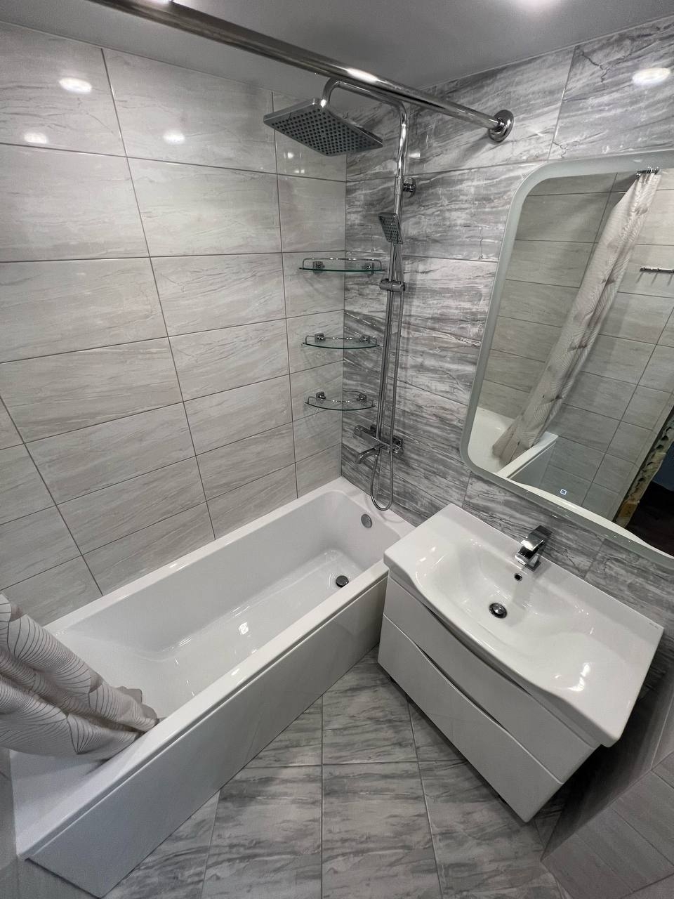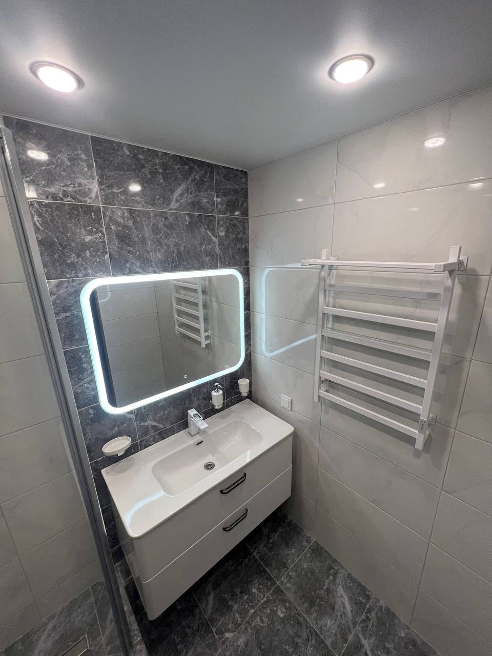 также посоветуем, где лучше приобретать. Материалы, требующие согласования (пвх панели,плитка, унитаз, ванна и мебель), вы выбираете сами, оплачиваете, а мы доставим и занесем в дом. Вспомогательный материал (клей, цемент, трубы и пр.) мы купим и доставим самостоятельно. Мы все доставим, поднимем, не беспокойтесь об этом – все отработано «как часы»