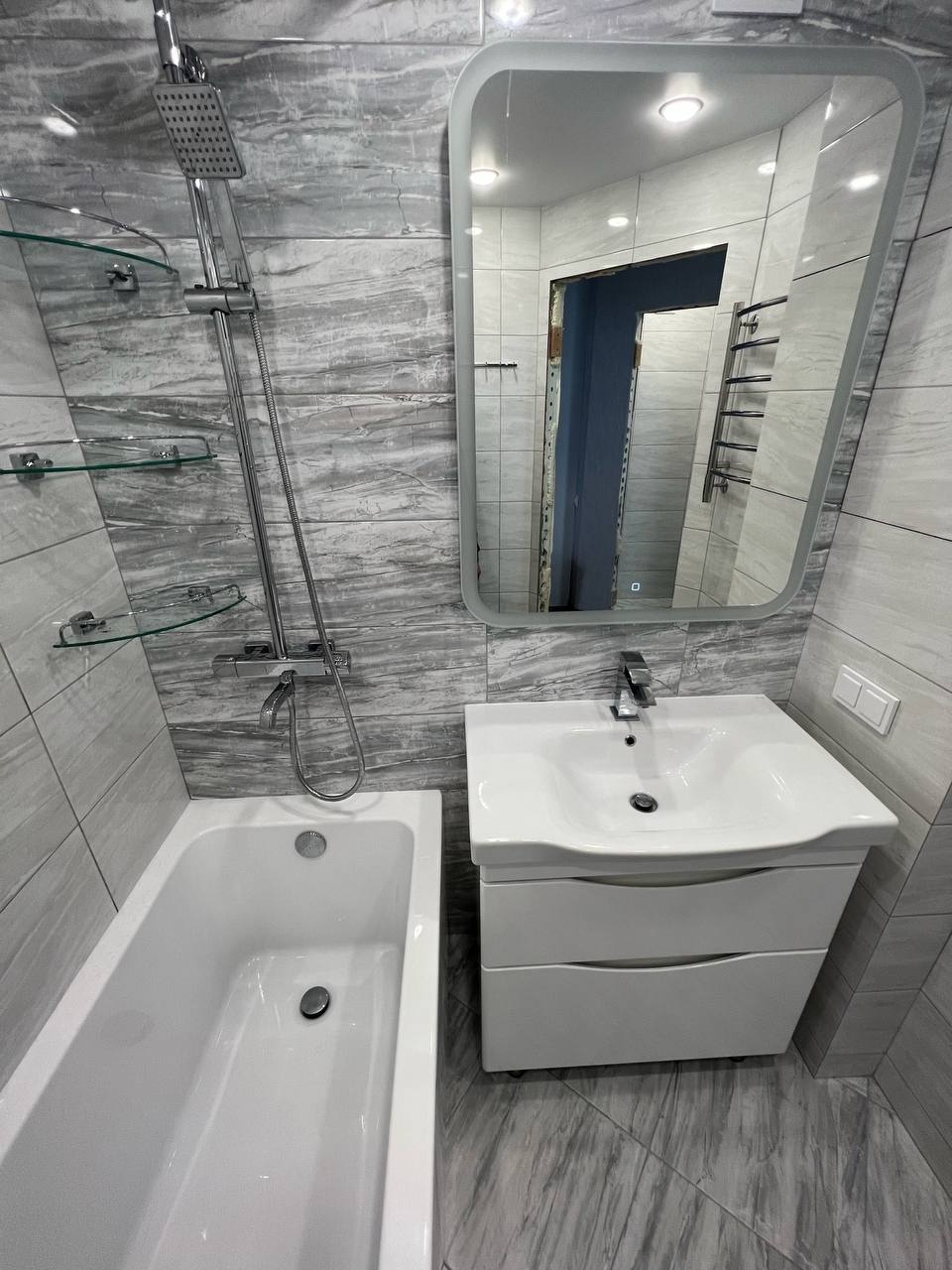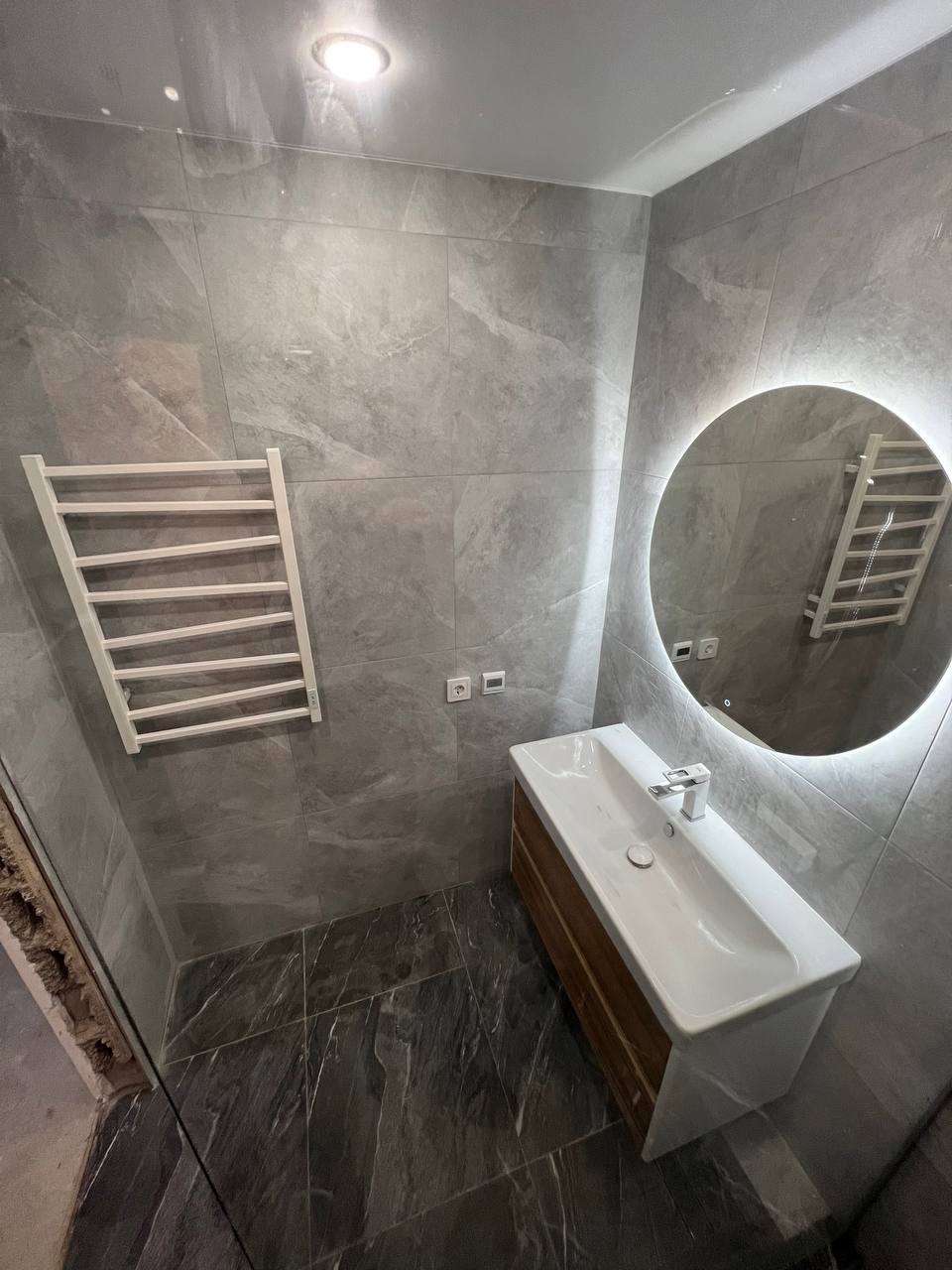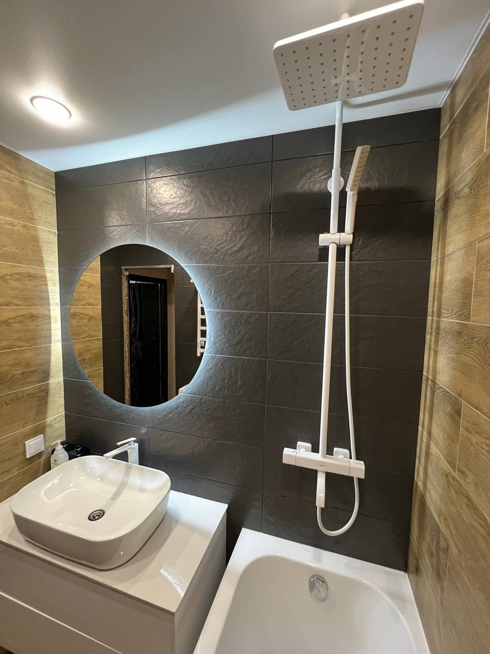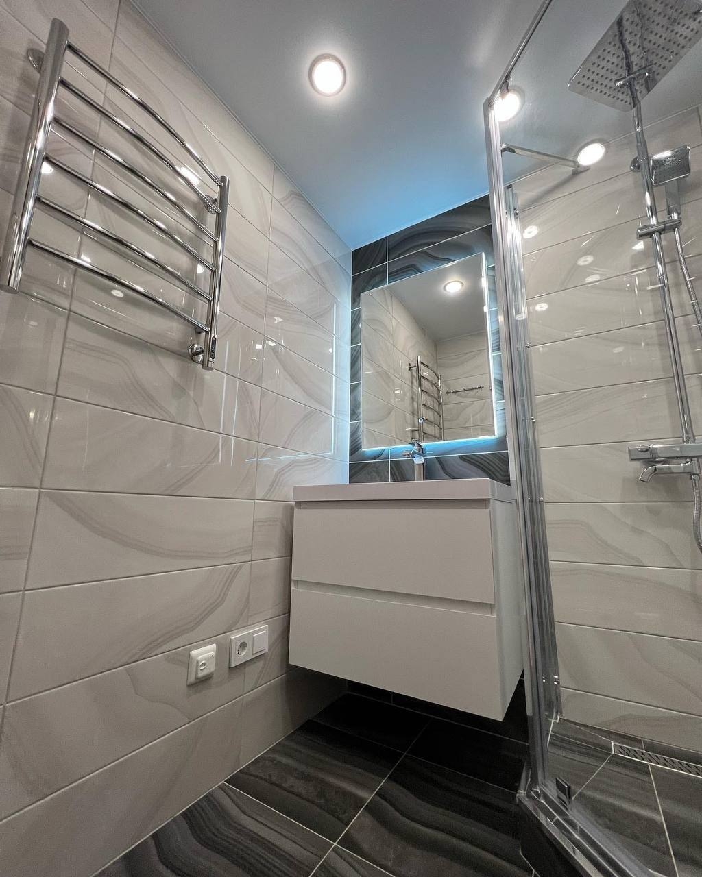 также посоветуем, где лучше приобретать. Материалы, требующие согласования (пвх панели,плитка, унитаз, ванна и мебель), вы выбираете сами, оплачиваете, а мы доставим и занесем в дом. Вспомогательный материал (клей, цемент, трубы и пр.) мы купим и доставим самостоятельно. Мы все доставим, поднимем, не беспокойтесь об этом – все отработано «как часы»