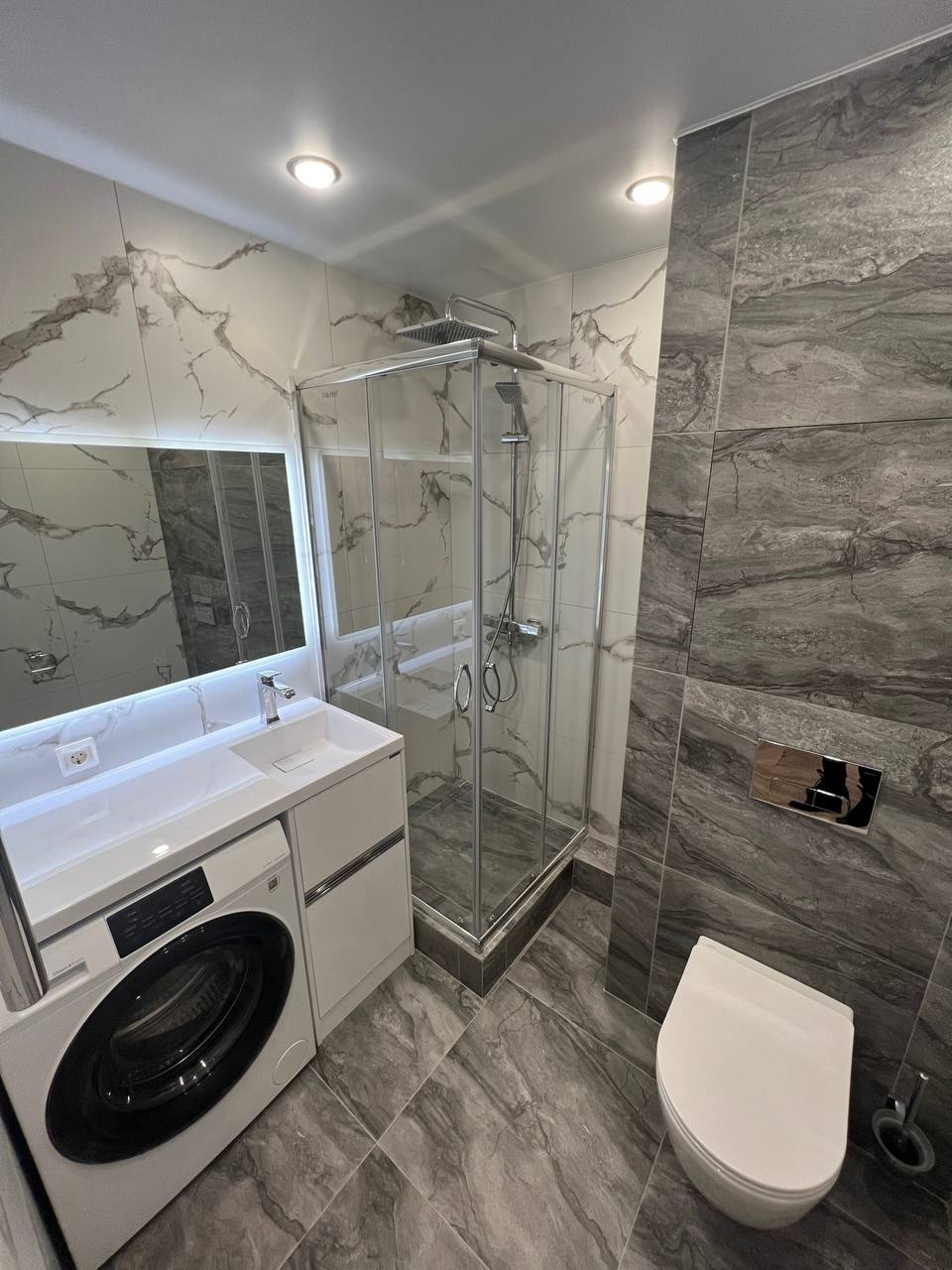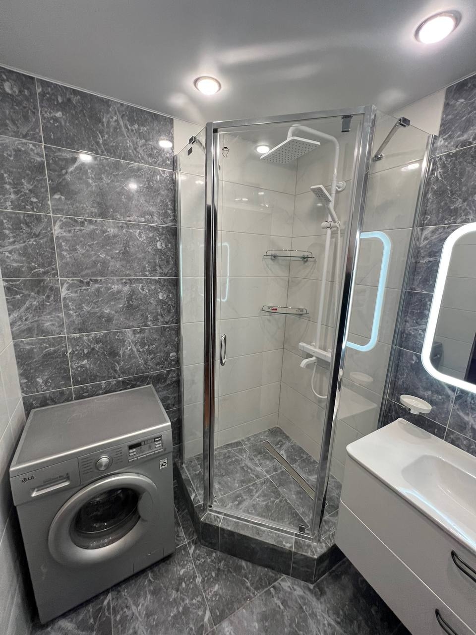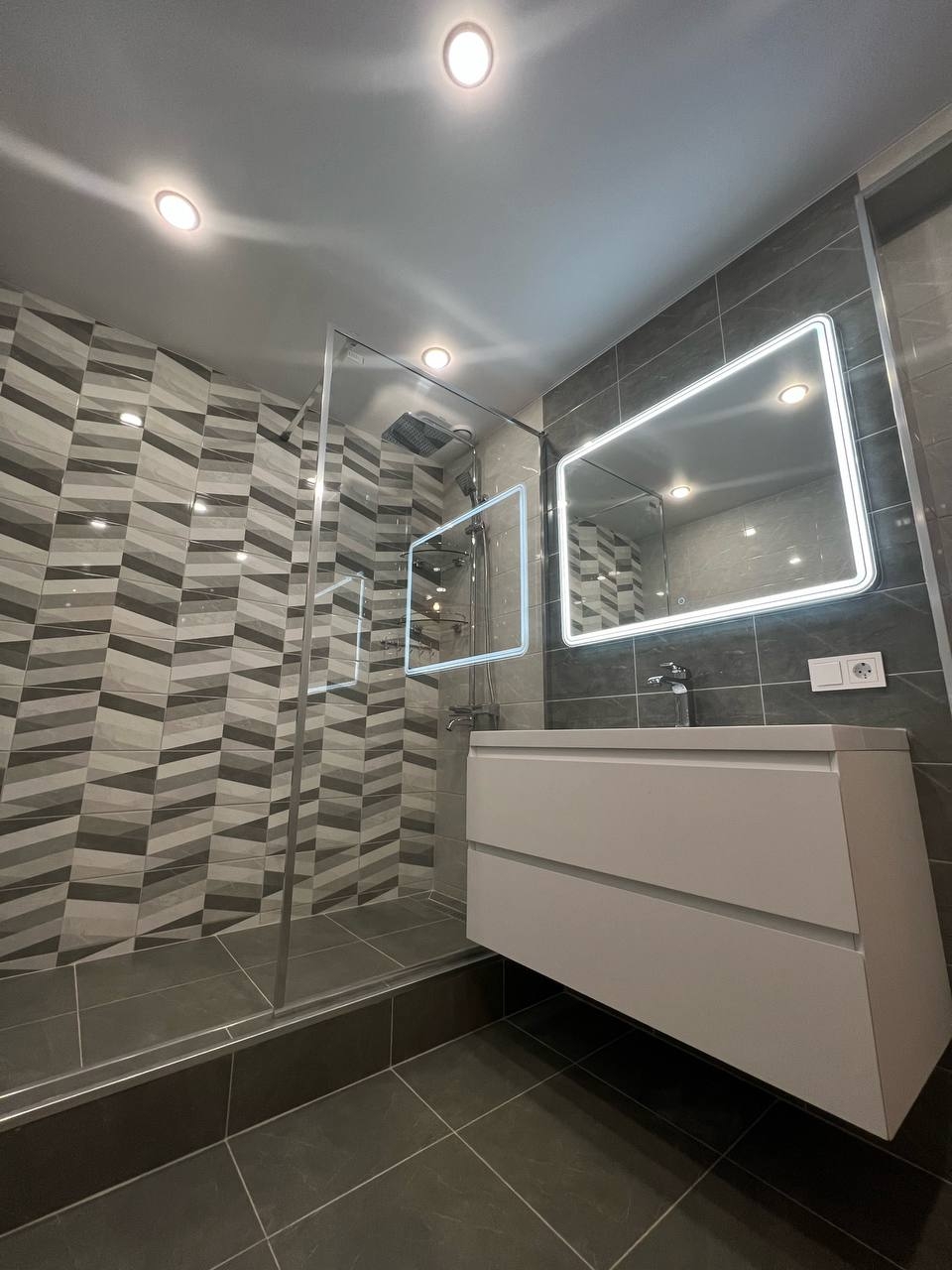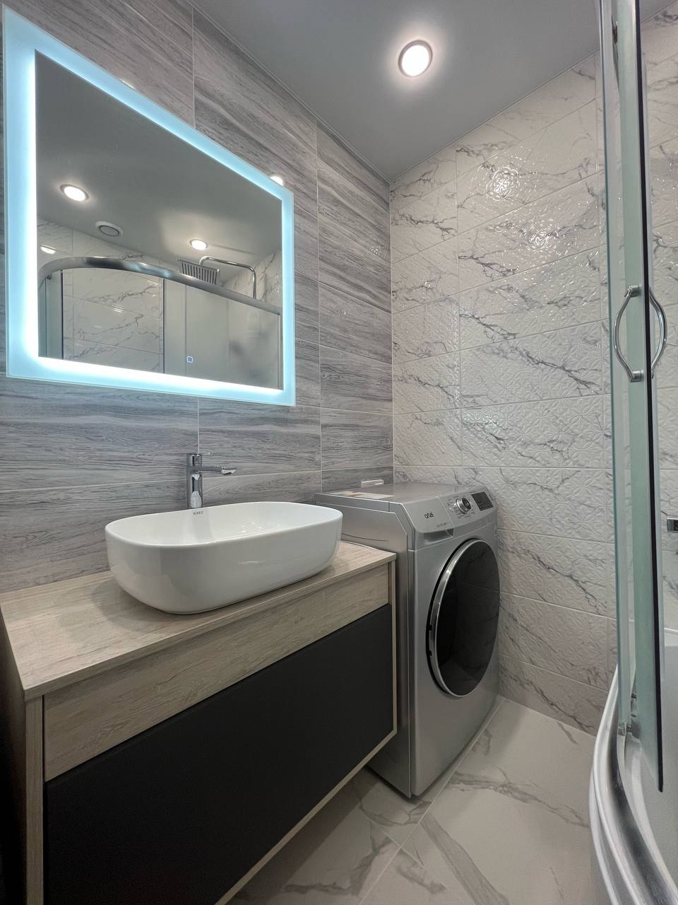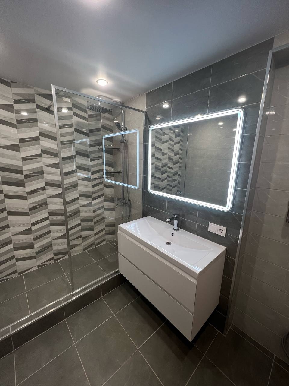 также посоветуем, где лучше приобретать. Материалы, требующие согласования (пвх панели,плитка, унитаз, ванна и мебель), вы выбираете сами, оплачиваете, а мы доставим и занесем в дом. Вспомогательный материал (клей, цемент, трубы и пр.) мы купим и доставим самостоятельно. Мы все доставим, поднимем, не беспокойтесь об этом – все отработано «как часы»